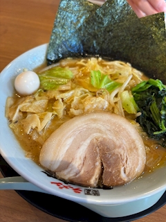 初めての試み! 私は基本的にラーメンは 細麺がタイプで、 太麺は二郎系しか許せないんですが 何を思い立ったか、 初の家系ラーメン🍜 味噌ラーメンも普段から 食べることがないので、 どうなんやろう、、 って思ったけど え、美味しい〜🤣💕 昼のお仕事のお客様に ここの味噌ラーメン美味しいと聞いて ちょうど用事のついでに 道中で見つけたので来訪🙂↔️ キャベツもほうれん草も 野菜たっぷり入ってるから 背徳感も少ないし ありかも、、、 ただ、見かけによらず この方、 にんにくどぉーーーーーん!🧄 1啜りで分かるほど めちゃくちゃにんにくで 私はにんにくガールなので わりと好きでしたが お仕事前とかには 絶対ダメですね👃🧄🙅♀️笑 そろそろソラさんの お客様に教えていただいた あの味噌ラーメンのお店も 訪れてみないと🥹🥹 ソラさんを そそのかして道連れにしたい😁 腹痛込みで〜🤣