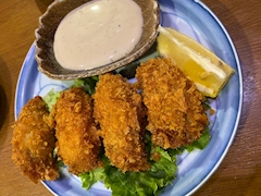 こんにちは杏です૮ . ̫ . ა 3日のお話続き! ここでそういえば食べたことのなかったカキフライを初挑戦🦪 もうそろそろ牡蠣の旬も終わりの季節なのかな?? 滑り込みの気分でした(?) ここの揚げ物は安定で衣がサッックサクで🥳 マヨネーズドレッシング?もお手製なのですがこれがまたほんまに美味しい⸝⸝ᐡ. ̫ .ᐡ⸝⸝ 酸味とチーズかな?少し感じるのが! でも馬鹿舌なので以前いただいたトリュフのドレッシングの方なのか判別できず😂 とにかくとにかく牡蠣もほろ、、っと口の中で溶けるし美味しかったです(՞ ܸ. .ܸ ՞)" そしてこちらも初の寄せ鍋🍲 鍋ものもいつも色々あるからどれ食べようか迷いに迷ってます😇 寒くなってきたしちょうどいいチョイスでしたね💡𓈒𓂂𓏸 白身魚がこれでもかくらいゴロゴロ入ってて なんのお魚かな?と思ったらなんとふぐ🐡しかも丸々1匹🐡!! 贅沢にいいんですかとなりました🥹 ふぐは以前うまく食べられなかった苦い思い出があるのですが(笑) とても食べやすく処理してくださってて 今回は苦戦せずに済みました🙆♀️ また続きます💭