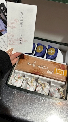 お店の皆さんへと🩷 美味しく頂きます🩷 あずさが食べたのは羊羹のようなわらび餅のようなもちもちした羊羹みたいな中に栗が入っている🌰 心がほっくりするような和菓子でした 玉露とあいそうな繊細なお味でしたよ🍵