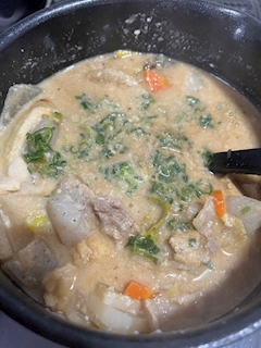 黄桜で買った酒粕がまだ余っているので またまた酒粕で粕汁を╰(*´︶`*)╯♡ こんにゃくと根菜は必須でございます 温まるし沁みるー 野菜もお肉も手軽に取れていいですよね あとは、豚肉とレタスとブロッコリーを炒めた何か ふふふ🐷🥩🥬🥦 食べるものは気にしてます 🎀 れい 🎀