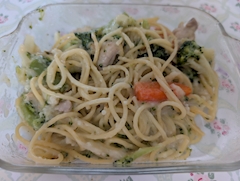 あともう一品は 組み合わせ悪いですが クリームパスタにしました🍝( 'ч'๑ )ŧ‹"ŧ‹" モカ君は(*´ `ㅅ)オネンネ♪
