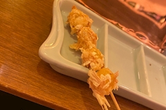 こんばんは杏です🌙 23日のお話続き! そろそろ串の種類の記憶が怪しくなってきました、、(笑) 銀杏を湯葉の衣で揚げたもの! 湯葉がパリパリでとってもいい食感- ̗̀ ෆ( ˶'ᵕ'˶)ෆ ̖́- 銀杏もちょうどいい癖があってお酒が進みましたね🍻 湯葉の衣って他にも色々合いそうで合わせてるの食べたくなりました🥹 これは確か卵ポン酢で頂く紋甲いかとオクラやったはず🥹 卵ポン酢が上手く絡められなくて苦戦しているお客様、笑ってすみません👐🏻(笑) こっちがいかおくらやったかな、、1つどうしても思い出せなくて めっちゃ考えてます😂(笑) まだ続きますがひとまず11月の投稿はラストですね! 今月はお店もですがブログが大分休み休みで🥲 来月はまんべんなくぼちぼちがんばれたらいいなと、、、! 皆様も11月お疲れ様でした🌸
