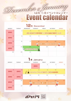 気づいたら 11月も 終わってるΣ(゚д゚) と言う訳で 11月もソラと (*・∀-)db(-ω・*)乾杯 して下さった 皆様!! ありがとう ございました♡ 12月も 風邪やインフルに 気をつけて😂 元気いっぱい 飲んだくれたいと 思います🍻 12月も よろしく お願いします♡ 12月・1月の イベントカレンダー 貼っときます😆 12月・1月も DUOは 楽しいイベント 盛りだくさんです🥰 ぜひぜひ 遊びに来て下さいね🤗
