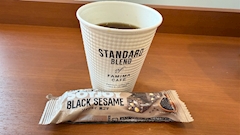 さすがにカフェラテ飲みすぎなのでコーヒーに。。 ソイジョイの黒胡麻、個人的にとても好み🌸甘くなくてちょうどいいです🩶🤍🖤
