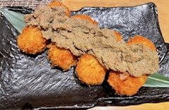 お食事の続き〜 カニクリームコロッケ🦀 この時期ならではですね🥹💖 この上に乗ってるカニ味噌とカニ身のほぐしたのがまず濃厚で美味し過ぎて!👏 コレだけでずっとお酒飲めるなぁ〜と、お客様と共感しあいました🤣✨️ 中のカニクリームのお味もめちゃくちゃよかった🥺💓 クリームコロッケ大好き民には刺さりすぎるお味でした😆 牛タンフライ🐮 牛タンフライって珍しいですよね?!🤔 このお店でしかまだ出会えてないです☺️🫧 前回来た時も頼んだのですがコレもめちゃくちゃお酒進む、最高のアテなんですよね🥹🍺 クオリティ高すぎる揚げ物効果で私もお客様もいつも以上にお酒進みまくりました🤭💖 LAST一つお食事写真続きます📸🫧