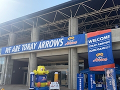 アローズのマスコットキャラ【⠀アロッチ 】可愛くてぬい買おうかな、、ってグッズ売り場でめっちゃ悩んだ🤣 端っこで応援してる姿ちょこんとしてて可愛い〜😍😍 ファンサもしっかりしてくれた🤭💞