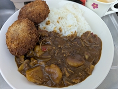 最近忙しくてブログ更新が なかなか出来てないです😅՞ ՞ 昨日の残りのカレーに ミンチカツをトッピング しました🍛( ' -' 🍛 )