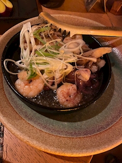 こんにちは杏です(՞ . ̫ .՞)" 26日のお話続き! 海老とタコと舞茸のアヒージョ🦐🐙 にんにくがしっかりきいてて🧄 ねぎがまたいい味だしててとっても美味しかったです🥳 豚肉の山椒焼き🐷!! 山椒大好きなのでとっても嬉しいメニュー🥳💖 添えてあるお野菜も味がしみてて美味しいしお肉も山椒でさっぱり食べやすくなってて🫶 天ぷらの盛り合わせ🍤 しその天ぷら大好きなのでしれっと最初にいただいてました😂(笑) 真ん中のぶりの天ぷらがとっっても美味しかった🧏🏻♀️💖 煮付け?照り焼き?を天ぷらにしてるのかな?甘辛い味がよくしみてて🤤 またもう少し続きます💭 本日も遅がけ出勤します! 時間はまた改めて、、、、!