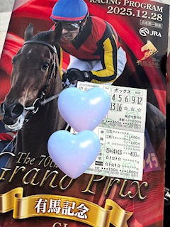 日曜日✏️🫧 この日は1年に1回、 普段やらない人も賭ける という有馬記念の日🥇 私も普段ギャンブル全般に 興味はありませんが この日はお客様に また競馬同伴しよかと お誘いいただき 競馬場まで観戦へ🥹✊ 京都で開催ではなかったので、 スクリーン上で見るんですが おうちのテレビとは違いますね🥹 前回の大きなレースで 初めて連れていただいて 今回は2回目の参戦だったので 前回よりも落ち着いて 観戦できた気がします☺️ あ、結果は 全敗でした☺️ 私は本当にこういう賭け事や くじ運が悪すぎるので 本当に向いてないです🙂↔️ 有馬記念当日まで2、3回程 お店でお客様と専務、ボスと 散々話し合いもしたのに 見事に全負けっ😂 でも普段しないからこその経験を させてもらって とっても楽しかったです😆 競馬場の間はお酒飲まないで って言ってたら お手洗い行ってくるわって しばらーーく帰ってこず 戻ってきたと思ったら こっそりカバンにレモン酎ハイが 忍び込んでたのは笑いました😂 お次はお食事編です✏️