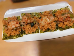 こんにちは杏です₍ ᐢ. ̫ .ᐢ ₎ 最近写真を撮る気にもならんやる気のない自炊が続いててネタが尽きてきてますが() 過去のものを上げていきたいと思います🤙🏻 節分の日にね、夜お仕事終わって太巻きとかどっか残ってへんかな👹 って色んなスーパー寄り道したけどどこも見事に駆逐されてて😇 なんにもなかったのでせめて家でキンパもどきでも作るか、、 といつのか分からんけど残ってた韓国のりの上にビビンバ風の味付けしたご飯と豚キムチ小松菜いりを乗せて なんちゃってキンパしたら 具材とごはんは美味しいけど韓国のり思ったより古かったらしく 変な味して😂😂 期限確認してへんかったけど絶対まずいくらい過ぎてた、、、、 みなさん、気をつけましょね、、、、 ま、まあ中身は美味しかったので!!!良しとしましょう!!!! 一人暮らし、賞味期限切れの事故は あるあるですよね??? あるあるって言ってください、、、、