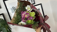 🎄メリクリ⭐️の当日は..... 前から約束していたお客様と同伴からスタートでした🌙 書く事がおおいのでいくつかにわけわけして書きますね🙏 まずは花束贈呈スタートをしてくださって💐 あずさはじつはお花や草木が大好きです! 家にも愛でている職場が🪴 それを知っていてよくお花を贈ってくれるお客様✨ 見にくいけどサイドに濃いバラの花が差し色ではいっていてすごく綺麗なの....🌹 無事行かさせていただきました❤️ 包装紙も可愛いから使いたかったけど難しくて、リボンだけ🎀 家の中が華やいで嬉しいです🙏 つづく、、、