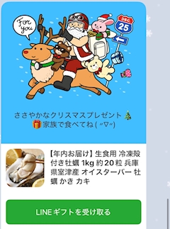 本日仕事納めた聞いていたけれど.... 心も穏やかで仕事納めできていますように🙏 たらこでみなさん❤️ LINEギフト ごぞんじですか?? できたら推しのLINEギフトの欲しいものリストぜひ チェックしてみてください❤️ 実はLINEギフト🎁 LINEを開くとLINEギフトがあると思うので開くと そこには沢山の商品がありますが 実はこの商品たちを マイリストに入れておける👏 簡単にいうと。 【私から欲しい🥹】 が少しわかるんです❤️ なんとも素敵なリストが.... その中からお客様が.... 牡蠣だぁ〜🦪👏 嬉しい❤️❤️❤️ 生牡蠣を家で食べられる🏠 あずさのお客様本当にみなさん優しい方であずさの家族のことまでも考えて下さる。 本当感謝しています🙏 ちなみに牡蠣届いたらまた載せますねむくの楽しみ❤️