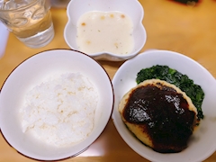 こんにちは杏です૮ . ̫ . ა また自炊日記🙂 書き始めに何書けばいいか分からなくなってきましたね🙂 作り置きのハンバーグをデミグラスソース風で😚 やっぱり定番のソースが安定に美味しいですね⸝⸝ᐡ. ̫ .ᐡ⸝⸝ チーズのせたかったけどこの時ちょうどチーズ切らしててのせれなかった😔 ほうれん草のバターソテーでも添えるかなと思ったら🥬 バターもちょうどなくて😂 マーガリンでやったらまあ失敗でしたね、 なんでも代わりにはできないということが分かりました😇(笑) ハンバーグは最近鶏ひき肉で豆腐ハンバーグにするのがマイブームですが ずっとそれにしてたら 牛豚ミンチのハンバーグも食べたくなってきますね🐮🐷