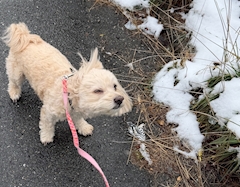 雪見せてあげようとお散歩❄️🐾 散歩大好きやけど毛短くなったし寒そう💦 写真撮った瞬間ブルブルしたところなので風に煽られてる訳ではありませんw 今日は友達とランチしてネイル行ってきます💅