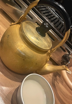 甘いお酒飲めないけどマッコリだけは好き🥹🤍 お休みの日は思う存分とアルコールも🤣✨️ ビールとか飲んだ後に最初このちっさい器で2杯飲んだけど全く足りなさ過ぎて結局ボトルでオーダー😂笑 こちらのお店はヤカンでした💛 しっかり飲み切って家帰った後まだ飲み足りなくてワインも一本開け切ってから寝ました🤣🍷笑 よく食べてよく飲んだお休み満喫☺️🤍🫧