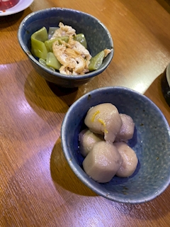 おはようございます杏です☀️ 17日のお話をば! この日はいつもお世話になっているお客様といつものお店でお食事からでした🍽️ 私が仕事で帰る間際にトラブって少しお待たせしてしまい申し訳なかったです🥲 お店の扉を開けたら、 まさかの大晦日に出会って仲良くお話してたお兄さんが😳 びっくりしてあ!!!って言っちゃいました!! 新年早々お会いできて嬉しかった🙌 この日のお通しはお浸しと里芋の煮物、 どっちも優しいお出汁が染みてて最初に手をつけるのにぴったりの美味しさでした(՞ ܸ. .ܸ ՞)" ホタルイカの酢味噌和え🦑 大好きホタルイカの季節が来ましたね!! 来る前に団体様がいらしててギリギリ1人前やったらしい、危ない😇(笑) プリプリで美味しいホタルイカでした- ̗̀ ෆ( ˶'ᵕ'˶)ෆ ̖́- またぼちぼちと続きます💭