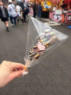 ここ最近ずっと言ってますが、、体重が大幅に増量中😅😅 痩せないと!って思ってるけど甘い物がやめられない😭💦 可愛いさで買ったマシュマロ。 友達が買ったチョコバナナも1口もらいました🥹🥹 痩せる気ないやろ!っとツッコまれながらも祭りだから!と言い訳を🤣🤣🤣 帰り際に見付けた、、 肉巻きおにぎり🙏🏻笑 いっぱい歩いたからお腹減るの仕方ないですよね🥺?