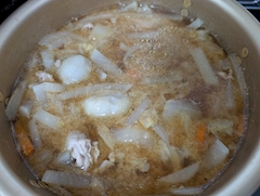 豚汁二日分作りました👩🍳 具は豚肉🐷 玉ねぎ🧅人参🥕 白菜🥬大根と小芋です❣❣ 疲れてるのでアリナミン 飲んで出勤します😘♡