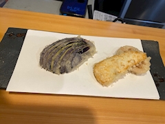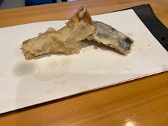 こんばんは杏です🌙 日曜日のお話続き! えりんぎと秋刀魚!秋の味覚ですね🍁🍂 えりんぎはつゆで、秋刀魚はお塩で🐟🧂 大好きなえりんぎはもちろん美味しいし- ̗̀ ෆ( ˶'ᵕ'˶)ෆ ̖́- 秋刀魚は何気に今年初めて食べました😳! 今年は沢山取れてるし脂も乗ってて美味しいって聞いてましたがなかなか機会なくて、、! 美味しかったし食べれて嬉しかったです( *´꒳`*) 鱧と鶏ささみ大葉巻きと、さつまいもはシルクスイート🍠 鱧はもしかしたら今年ラストですかね🧐 ふわふわで美味しかったです🫶 さつまいもは塩で食べたら甘み引き立つから美味しいですよね🥳💖 鶏ささみは大将の言い間違いがかわいらしかったけど😂(笑) ささみで合ってるか私が不安、 違う方やったっけ、、、?? とにかくつゆで食べるのがまた美味しかったです- ̗̀ ෆ( ˶'ᵕ'˶)ෆ ̖́- もう少し続きます💭