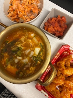 なんか全部赤いけど、 鮭のアラが大好きなので それ焼いて、 惣菜のエビチリと 明太子と チゲを作って 韓ドラを見ながら食べるお昼ご飯 最高に豪華で贅沢な休憩でした🥹 お腹すいてきた😢