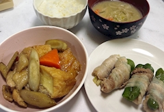 書く事がないので… 今日の夜ごはん🍚✨ 煮物とピーマンの肉巻きと残りのお味噌汁😋 ご飯炊き上がると同時に仕上がったら何か気持ちいい😆笑 暫く同伴もできてないので外食もしたいです😢 用意して今日も頑張ってきます✨
